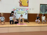 4月生まれのお友だちの誕生会がありました。ステージの上でも泣かずにお返事ができてかっこよかったです!☆ひよこ組☆☆あひる組☆☆うさぎ組☆先生の出し物では、パネルシアターを見て楽しみました!
