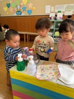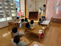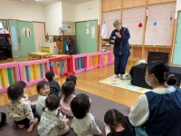 うさぎ組のお部屋で、白岩けい子先生による大型絵本や紙芝居などの読み聞かせがありました。お話の世界に引き込まれていく子どもたち。お手玉にも触れました。『あたま・かた・ひざ・ぽん』の手遊びもしました。...
